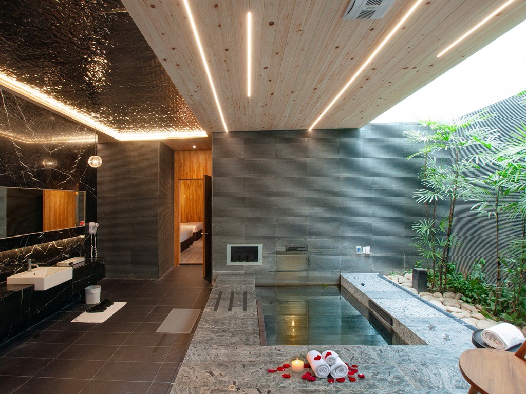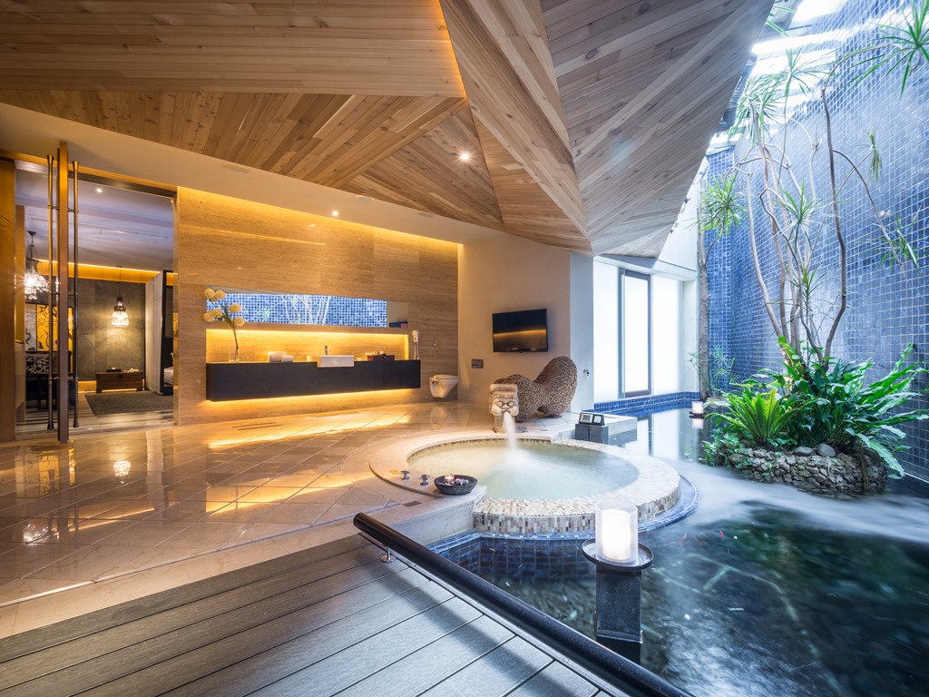 私人小花园或水景 2 張king size双人床 双人泡汤池/浴室专属电视 65寸电视/最新VOD影片系统 冰箱Mini Bar/免费提供矿泉水、饼干 独立车库/WiFi无线网络 独立可调节空调 反针孔偷拍检测